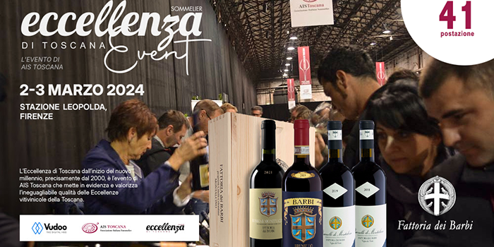 Fattoria dei Barbi presente a Eccellenza di Toscana, manifestazione che AIS Toscana dedica alle aziende più prestigiose della Toscana e ai loro vini. L’evento si svolgerà in due giorni presso la Stazione Leopolda di Firenze, sabato 2 e domenica 3 marzo 2024 dalle ore 10.00 alle ore 19.00.