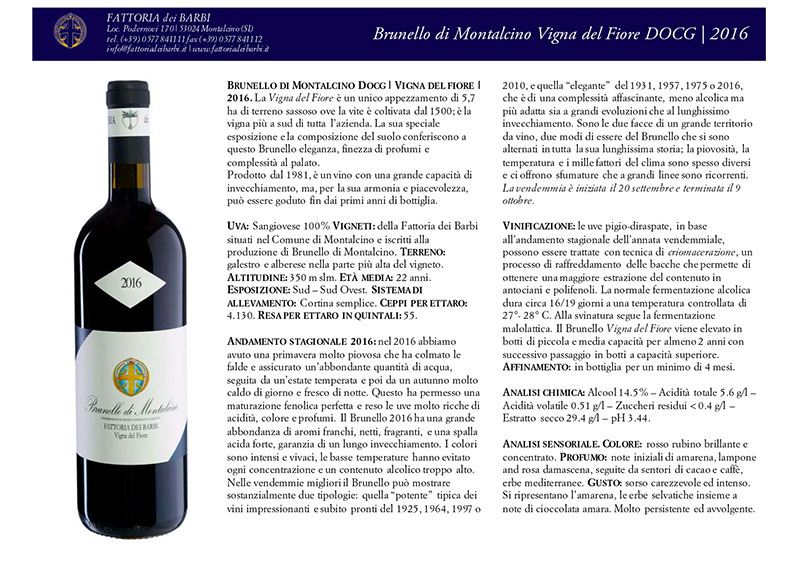 Fattoria dei Barbi | Brunello di Montalcino Vigna del Fiore DOCG 2016